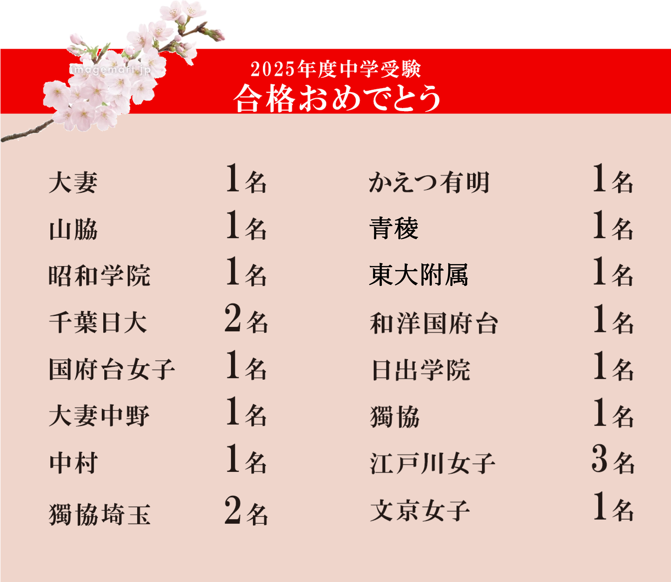 様々な国公私立中学へ合格実績のある先生が、お子様一人ひ